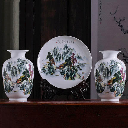 Petit vase en céramique 3 pièces avec peinture de paysage pastel