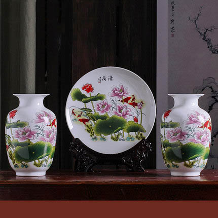 Artisanat de décoration de petit vase en céramique 3 pièces Lotus