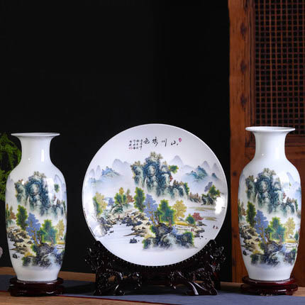 Vases en céramique de paysages de montagnes et de rivières 3 pièces