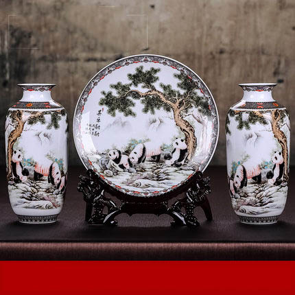 Assiette et vase suspendus en céramique 3 pièces pandas et arbre