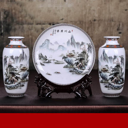 Assiette suspendue 3 pièces et vases avec montagnes et rivières