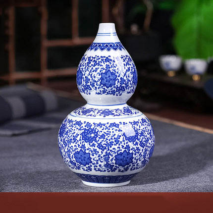 Vase en forme de gourde en porcelaine bleu et blanc salon