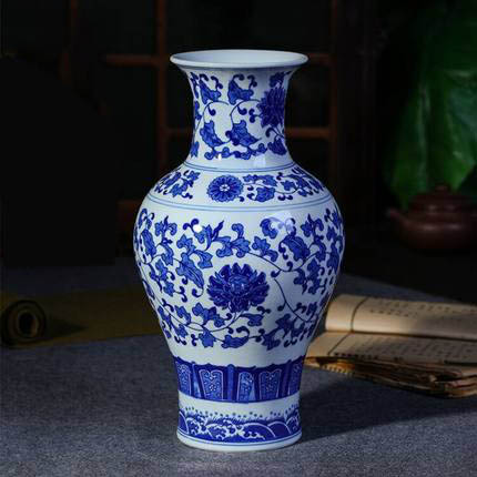 Vase lotus emmêlé en porcelaine bleue et blanche en céramique