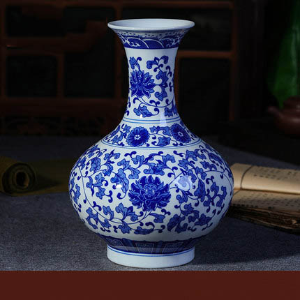 Ornement de vase en céramique en forme de lanterne bleue et blanche